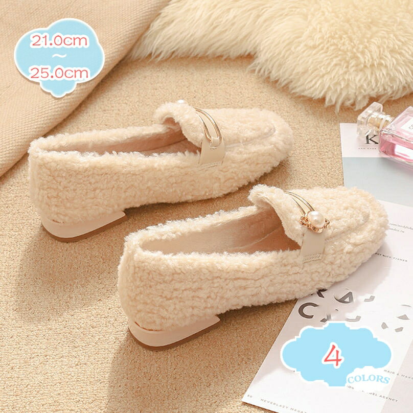 送料無料 ファーパンプス フェイクファーシューズ レディースシューズ 歩きやすい 裏起毛 モカシン ・・・
