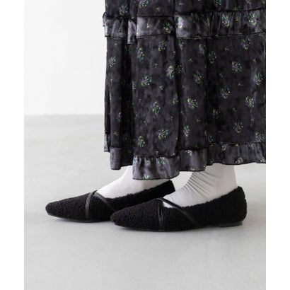 メヌエ Menue クロスストラップ ローヒール ボアパンプス (4020ブラックボア)