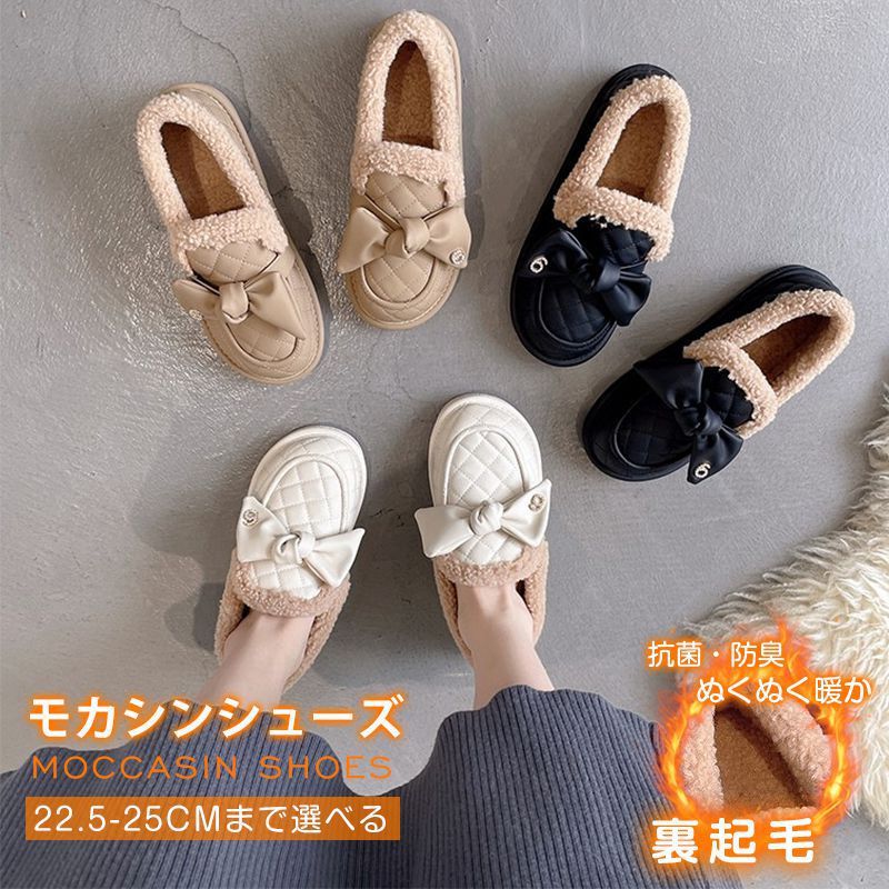 ぺたんこ パンプス モカシンシューズ スリッポン ボアシューズ レディース ローファー スリッポン ・・・