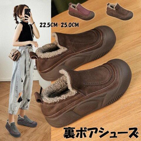 レディース スリッポン 靴 ボア スエード調 幅広 ローファー フラット ふわふわ もこもこ【大きい・・・