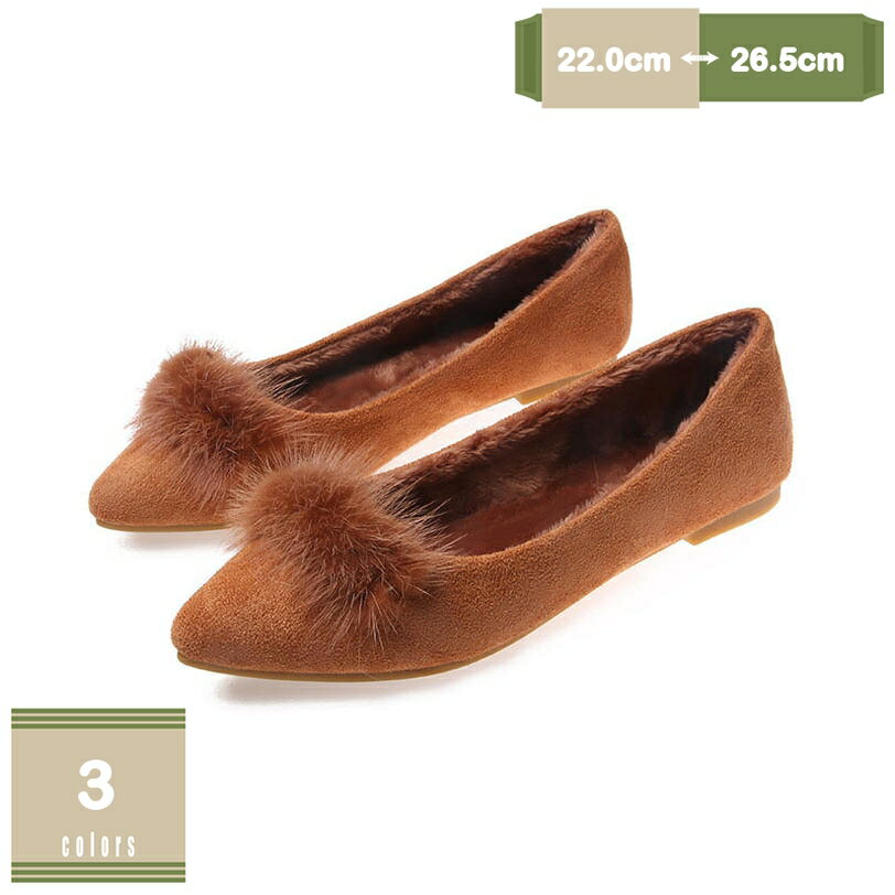 1000円OFFクーポン パンプス ぺたんこ 歩きやすい ファー付き ポインテッドトゥ パンプス 痛・・・
