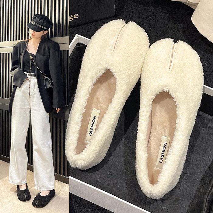仮足袋パンプス レディース 秋冬 ボア 歩きやすい 疲れにくい タビパンプス フラットシューズ ロー・・・