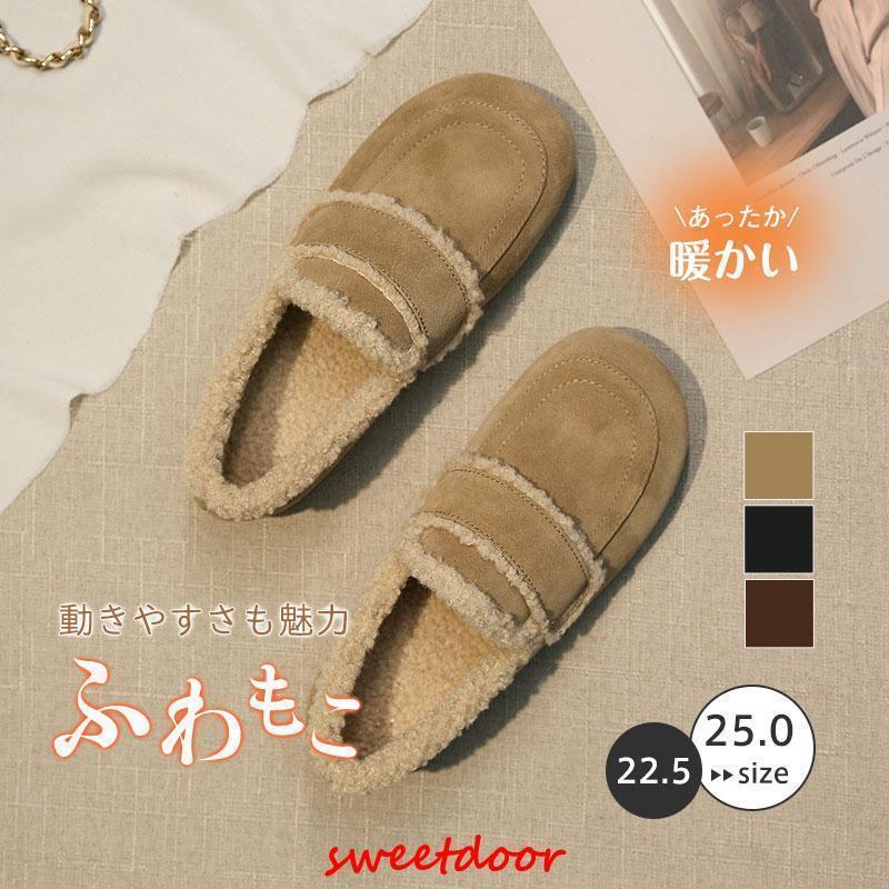 モカシン ムートン パンプス レディース シューズ 秋冬 靴 スリッポン ファー 履きやすい 可愛い・・・