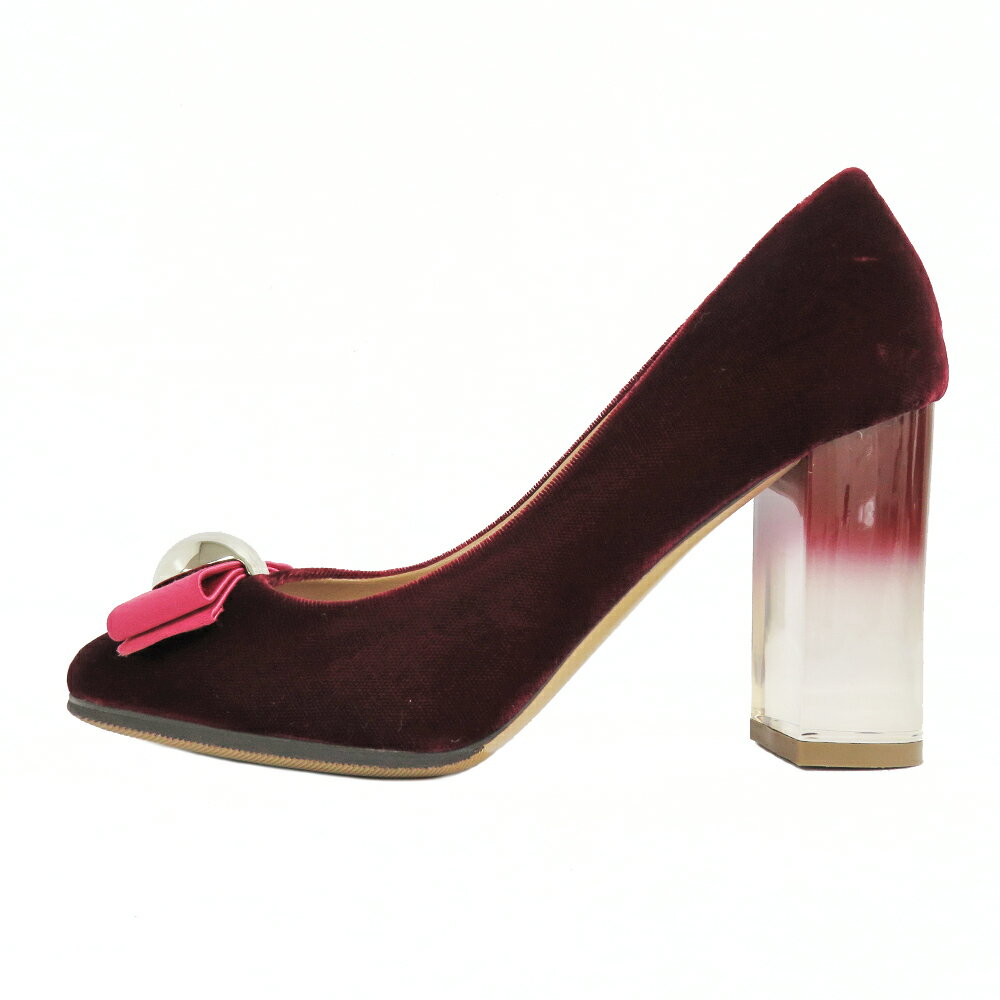 アクアガレージ aquagarage ヒール パンプス ローヒール (ボルドー)