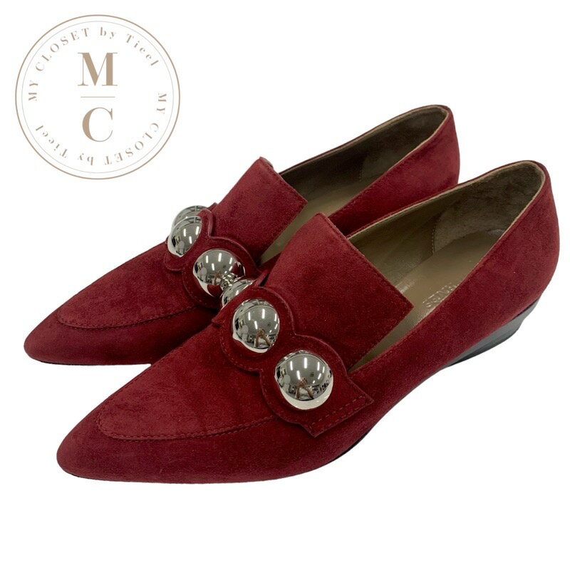 エルメス HERMES パンプス 靴 シューズ スエード ボルドー シルバー 丸スタッズ