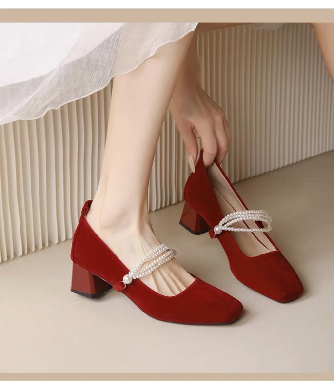 パンプス レディース 太ヒール チャンキーヒール 結婚式 ブライダル 披露宴 ワインレッド ボルドー・・・