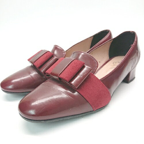 ◇ DMG ヴィンテージ風合い リボン オーバル フォーマル パンプス サイズ38 ボルドー系 レデ・・・