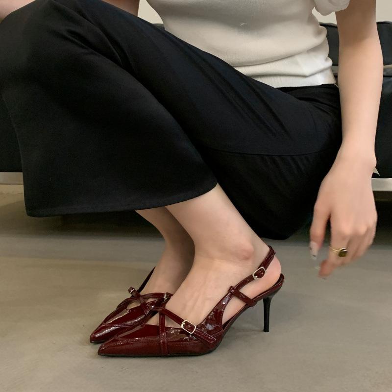 サンダル レディース 女性用 韓国 ウェッジソール ハイヒール エナメル パテントレザー ポインテッ・・・