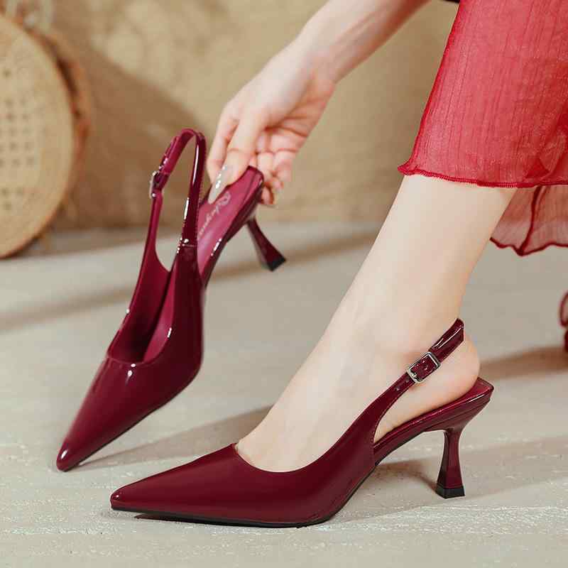 サンダル レディース ポインテッドトゥ クローズドトゥ バックストラップ 細ヒール ワンストラップ ・・・