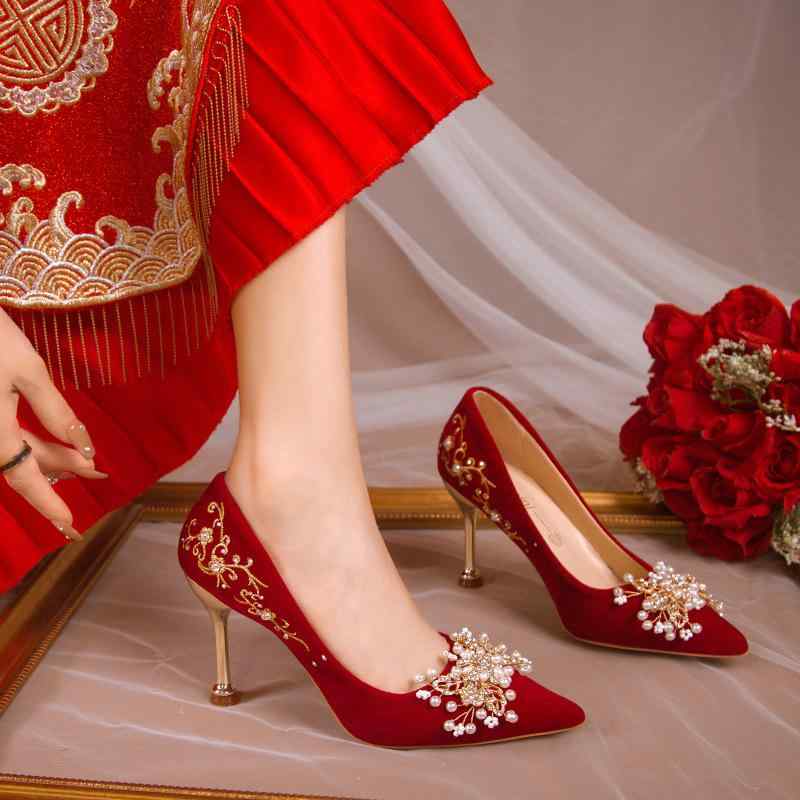 パンプス レディース 女性用 ハイヒール ピンヒール ポインテッドトゥ パール 刺繍 2WAY仕様 ・・・