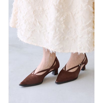 メヌエ Menue クロスストラップ ポインテッドトゥ ヒールパンプス (4218ブラウンサテン)