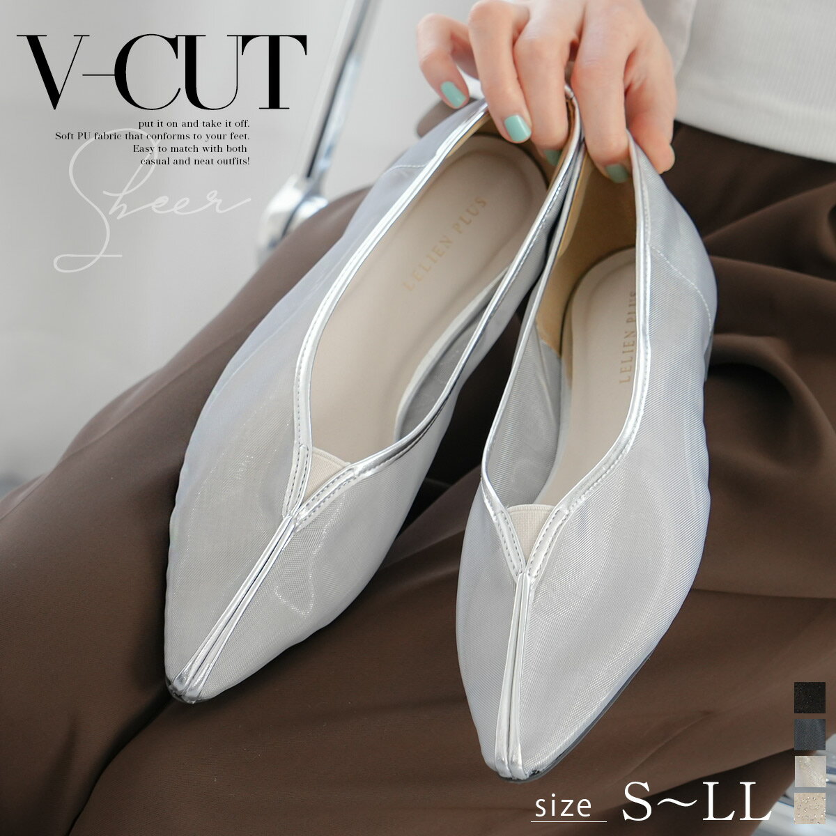 パンプス 痛くない 歩きやすい ポインテッドトゥ Vカットシアー メッシュ チュール ラメ 1センチ・・・