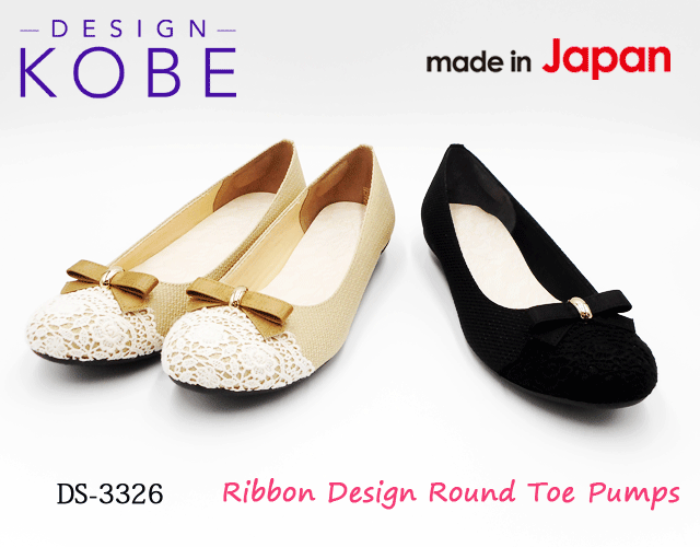 【SALE】DESIGN KOBE デザイン神戸 日本製 ラウンドトゥ リボン パンプス モールド ・・・