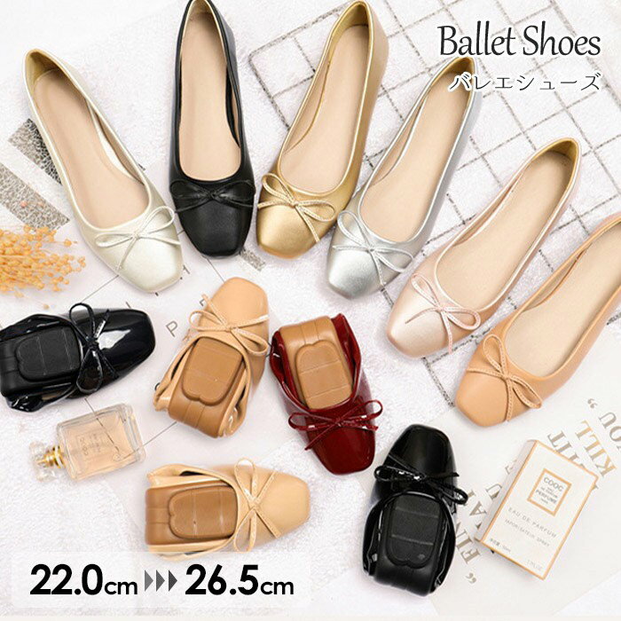 バレエシューズ レディース ローヒール バレエコア リボン ぺたんこ 履きやすい 歩きやすい ラウン・・・