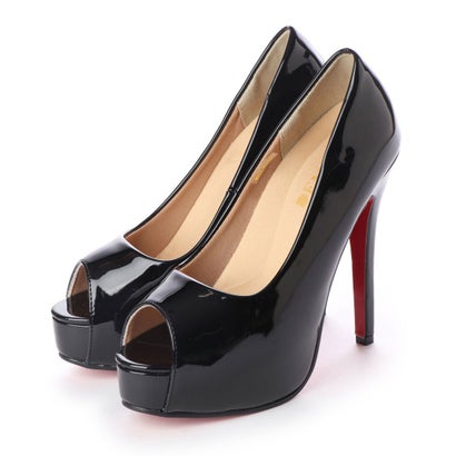 イタリコ ITALICO 美脚を叶えるレッドソール ハイヒールオープントゥパンプス (ブラックエナメ・・・
