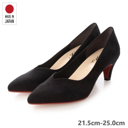 アイケープラス IKplus 【日本製】美脚ブイカットポインテッドトゥパンプス ■ブラックスエード/・・・