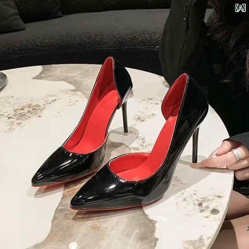 ヒール レディース パンプス 美脚 サイド レッド ソール ハイヒール 靴 ベッド 魅惑 つま先 女・・・