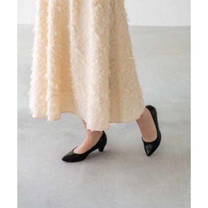 メヌエ Menue 幅広 4E チャンキーヒール ポインテッドトゥパンプス (ブラック/スムース調)
