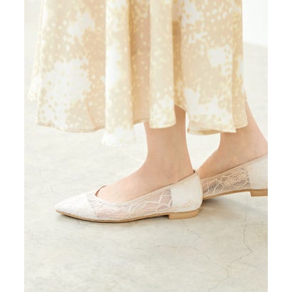 メヌエ Menue フラットヒール レースパンプス (4001アイボリーCL)