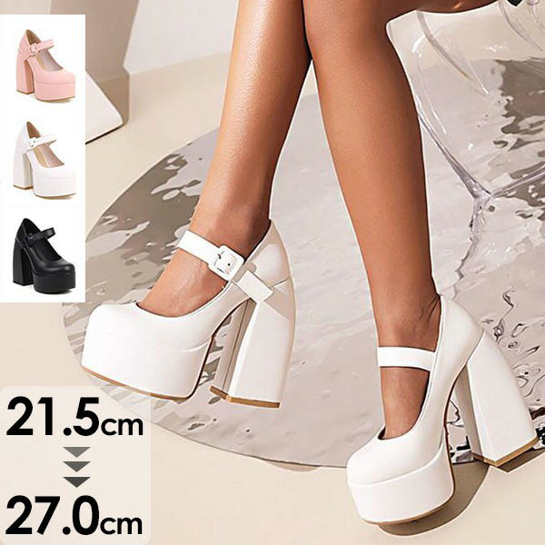 パンプス レディース 4E 日本製 厚底 ワンストラップ 大きいサイズ 痛くない ウェッジソール 幅・・・