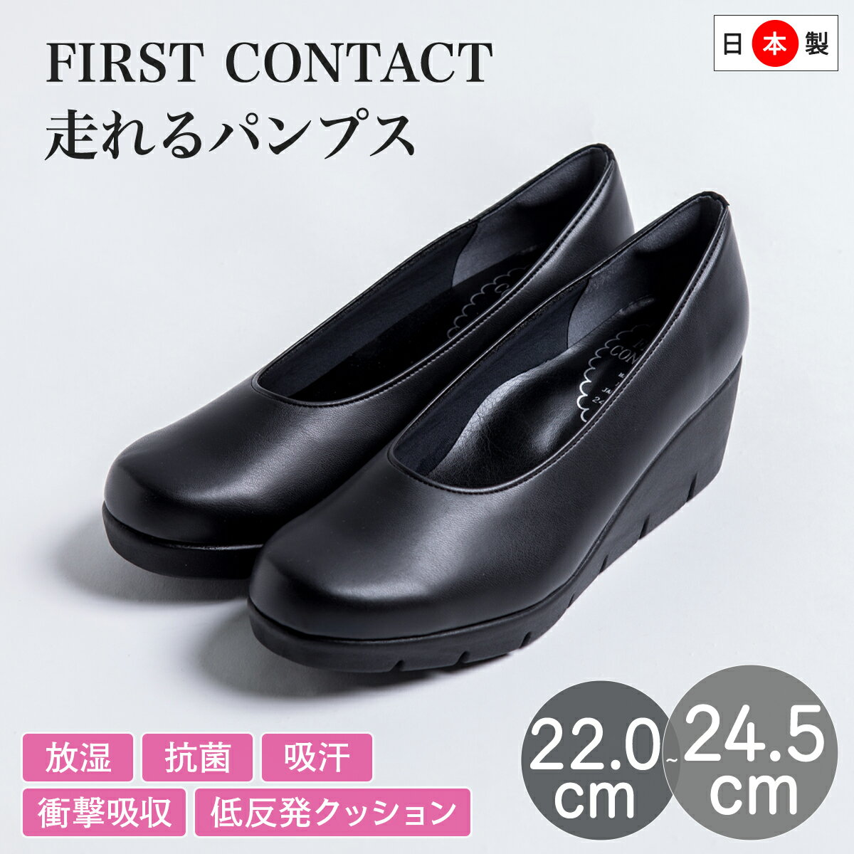 パンプス 走れる 日本製 ウェッジソール レディース ブラック 靴 黒 歩きやすい クッション 小さ・・・