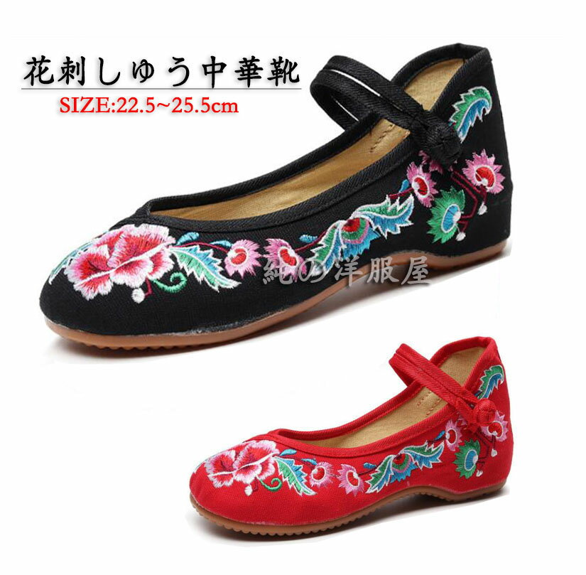 刺繍 チャイナ靴 パンプス エスニック 花刺しゅう 中華靴 布靴 婦人靴 チャイナ民族風 シューズ ・・・