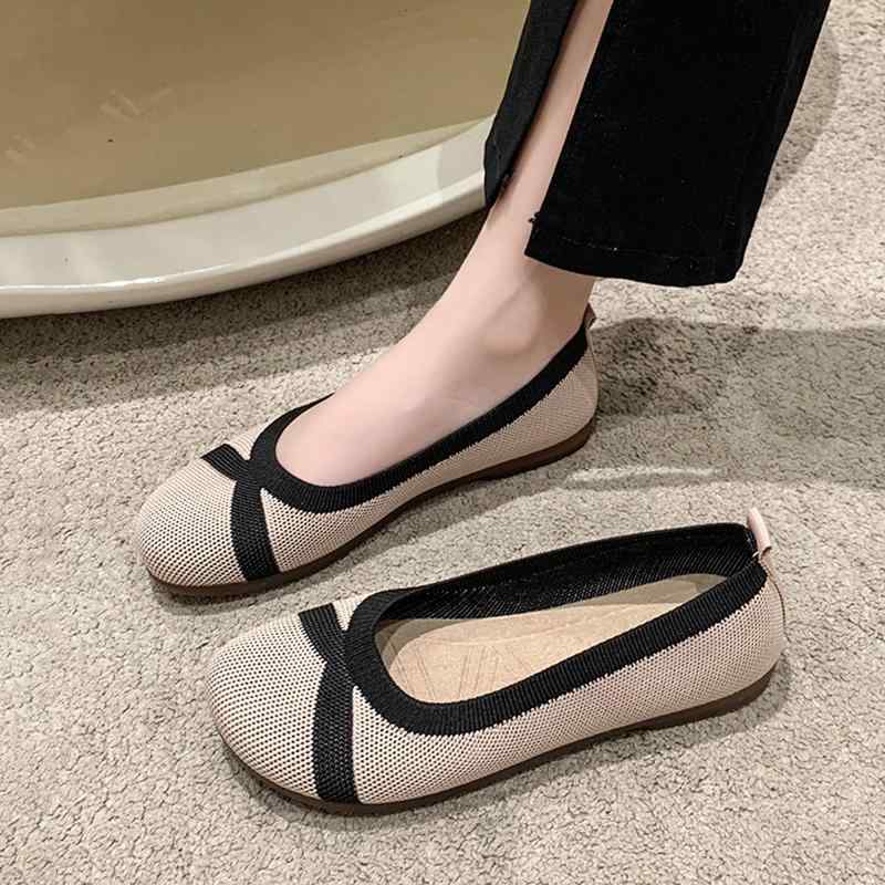 パンプス フラット レディース シューズ 春秋 ニット 通気性 布 靴 ソフト ソール PU おしゃ・・・