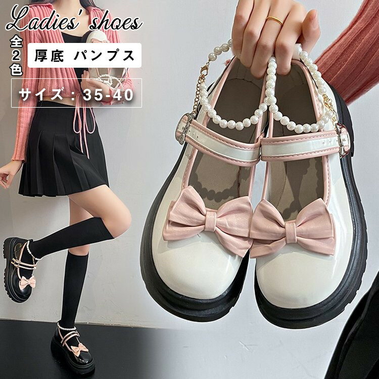 ロリータ 靴 パンプス 厚底 レディース ロリータシューズ リボン付き Lolita靴 ラウンドトゥ・・・