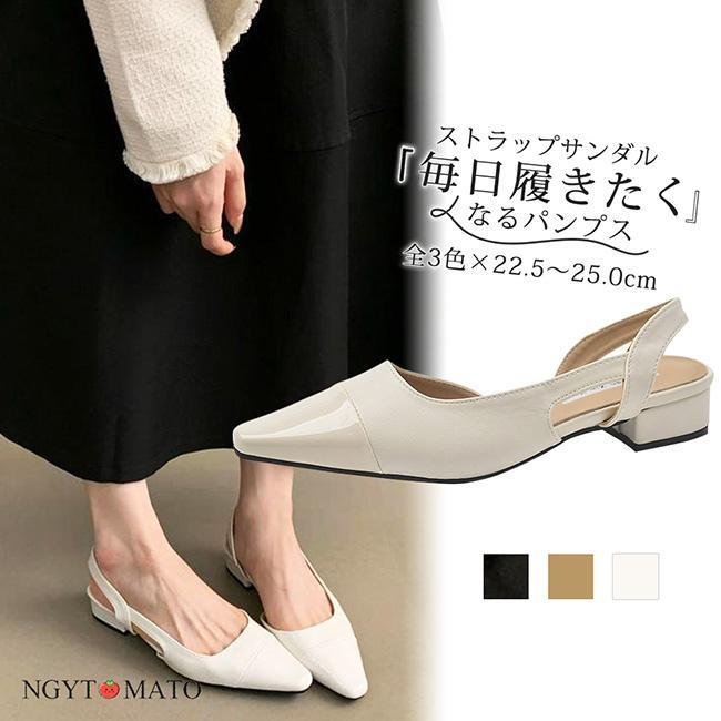 パンプス レディース バックストラップ付き ポインテッドトゥ ローヒール ストラップパンプス 大人 ・・・