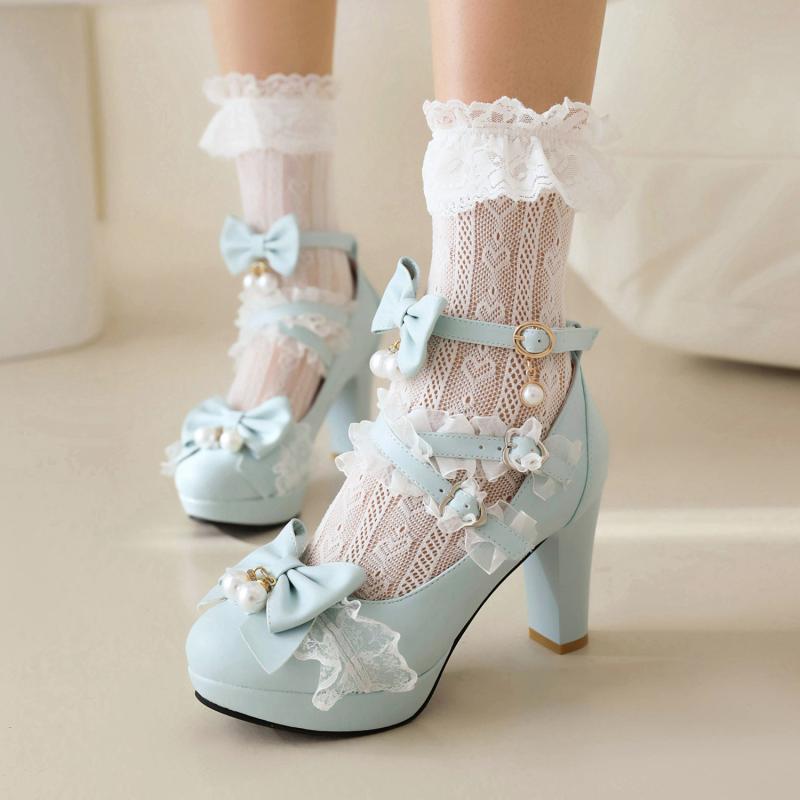 メリージェーン レディース 大きいサイズ ロリータ リボン レース 太ヒール チャンキーヒール 厚底・・・