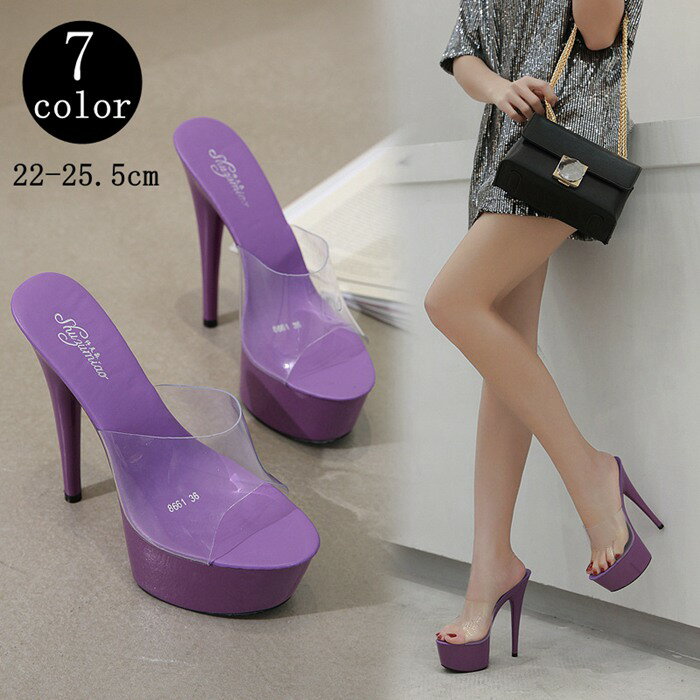 厚底サンダル ハイヒール ヒール高15cm 紫 カラフルヒール ピンヒール 大きいサイズハイヒール ・・・