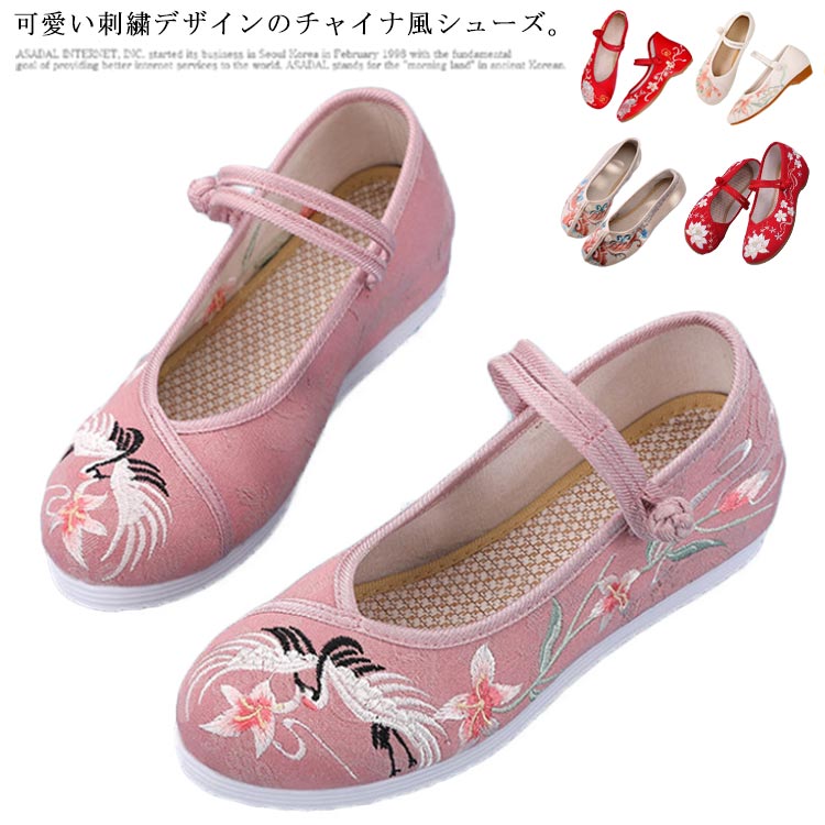 布製 疲れにくい パンプス パンプス 刺繍 歩きやすい 花柄 中華風 チャイナ靴 ローヒール レディ・・・