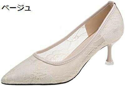 【20%OFFクーポン〜】パンプス 痛くない ハイヒール 6.5cmヒール チュール 透け感 花柄 ・・・