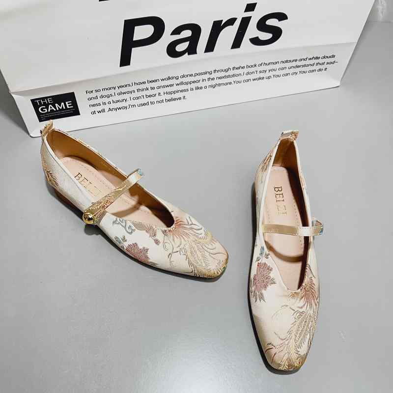 レディース パンプス ローヒール 春秋 太め レトロ 刺繍 大きいサイズ チャイナ風 エレガント マ・・・