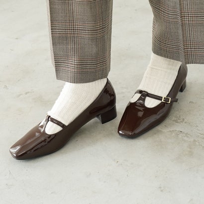 ラウナレア Launa lea 3cmスクエアトゥTストラップパンプス(0578) (DブラウンE)