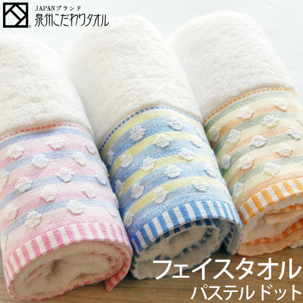 『パステルドット』フェイスタオル 約34×80cm 【泉州こだわりタオル】 ジャガード 無撚糸 ドッ・・・