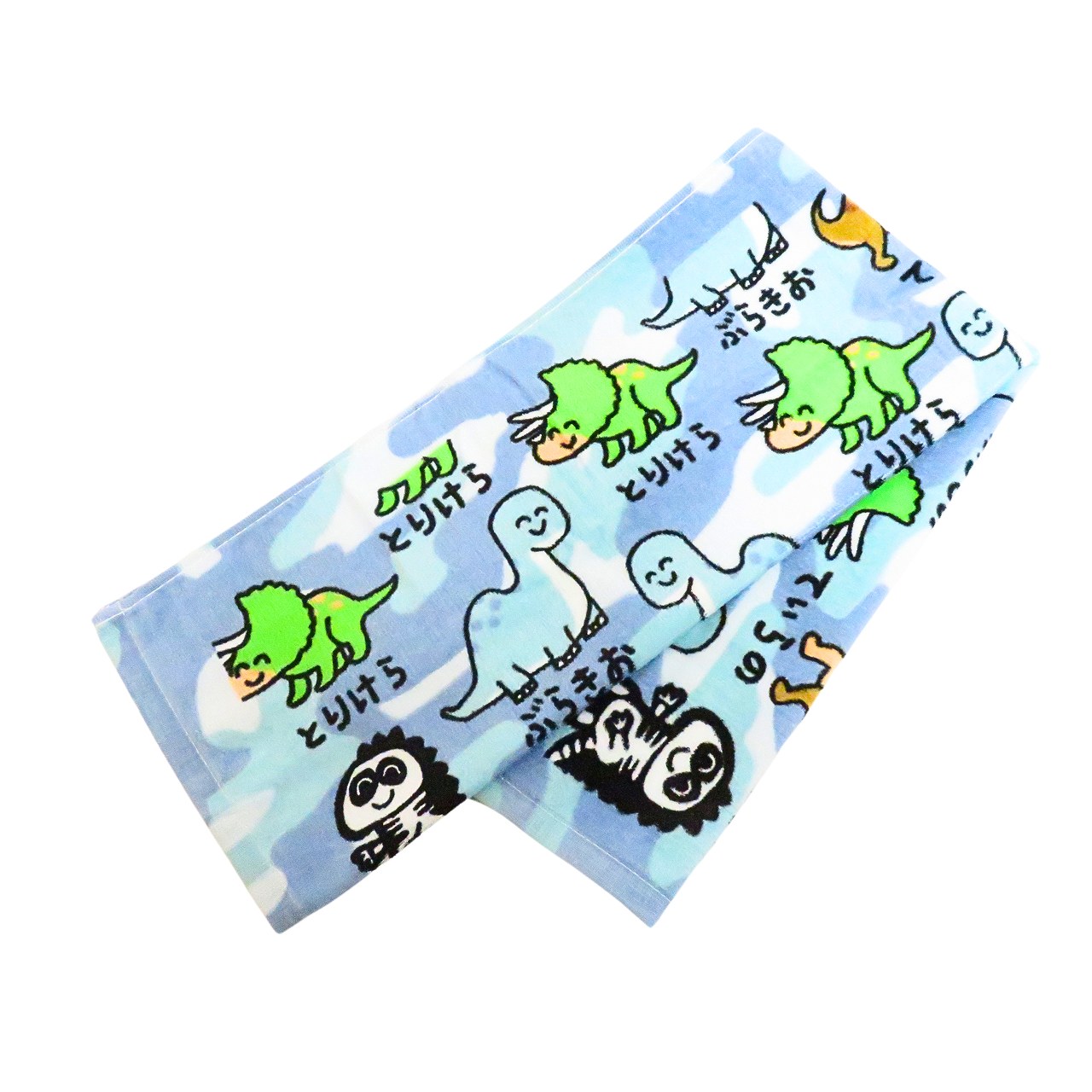 フェイスタオル かわいい 水色 青 タオル おえかきさんたおる 恐竜 キャラクター 綿100% 迷彩・・・