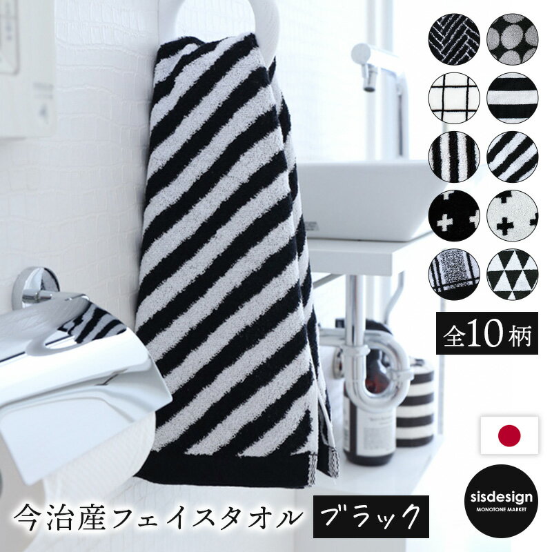 ブラック【フェイスタオル】ヘリンボーン ドット グラフチェック ボーダー アシメトリーストライプ ク・・・