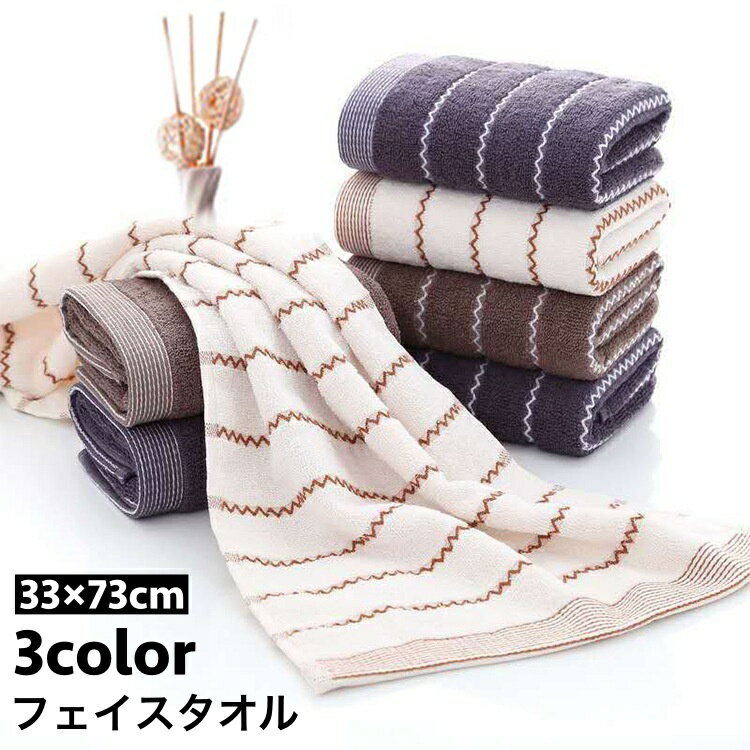 送料無料 フェイスタオル ハンドタオル バス用品 ボーダー柄 シンプル 吸水性 柔らかい 洗面 洗顔・・・