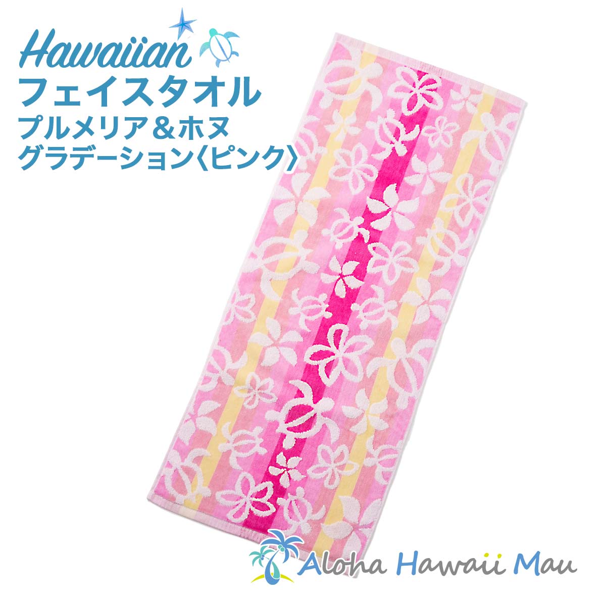 ハワイアン フェイスタオル プルメリア&ホヌ グラデーション タオル ピンク ハワイアン かわいい ・・・