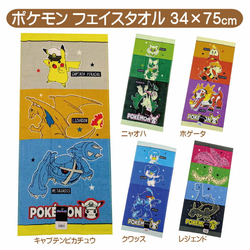 ポケモン フェイスタオル 34×75cm ピカチュウ クワッス ニャオハ ホゲータ レジェンド 保育・・・