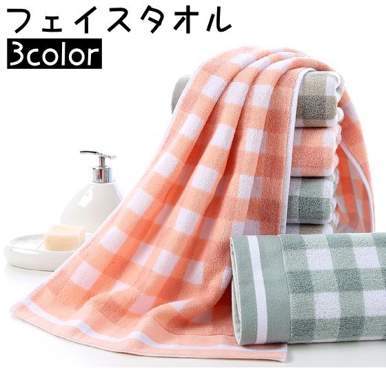 送料無料 フェイスタオル タオル 35 75cm 厚手 チェック柄 ふわふわ 吸水 洗顔 洗顔タオル・・・