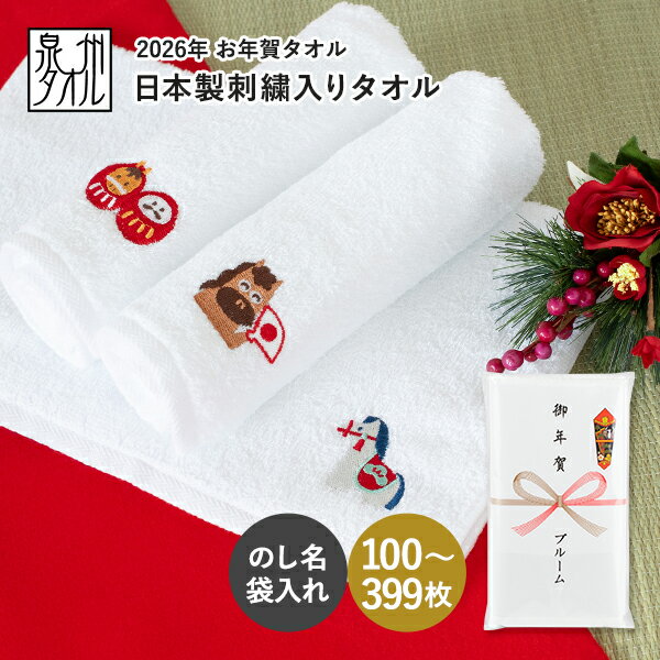 お年賀タオル 干支タオル 粗品タオル 日本製 刺繍入りフェイスタオル 200匁 (100〜399枚)・・・