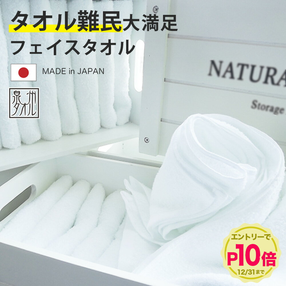 【エントリーでP10倍】タオル フェイスタオル 5枚 セット 日本製 白色 綿100% 泉州タオル ・・・