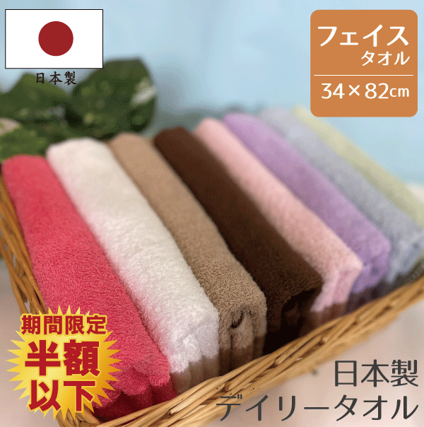 【期間限定半額以下!】【同色4枚セット】日本製 デイリータオル フェイスタオル 送料無料 4枚組 約・・・