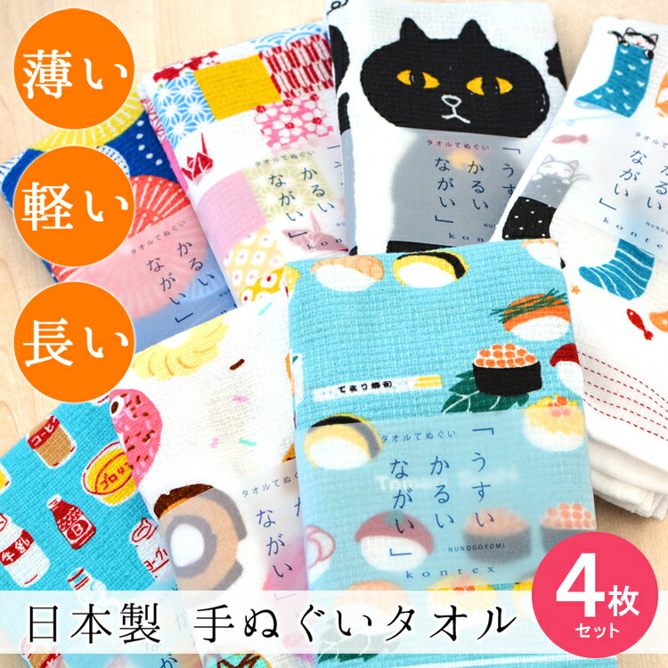 日本製 今治産 タオルてぬぐい 4枚セット ガーゼ 手ぬぐい てぬぐい 33×100cm 和柄 スポ・・・