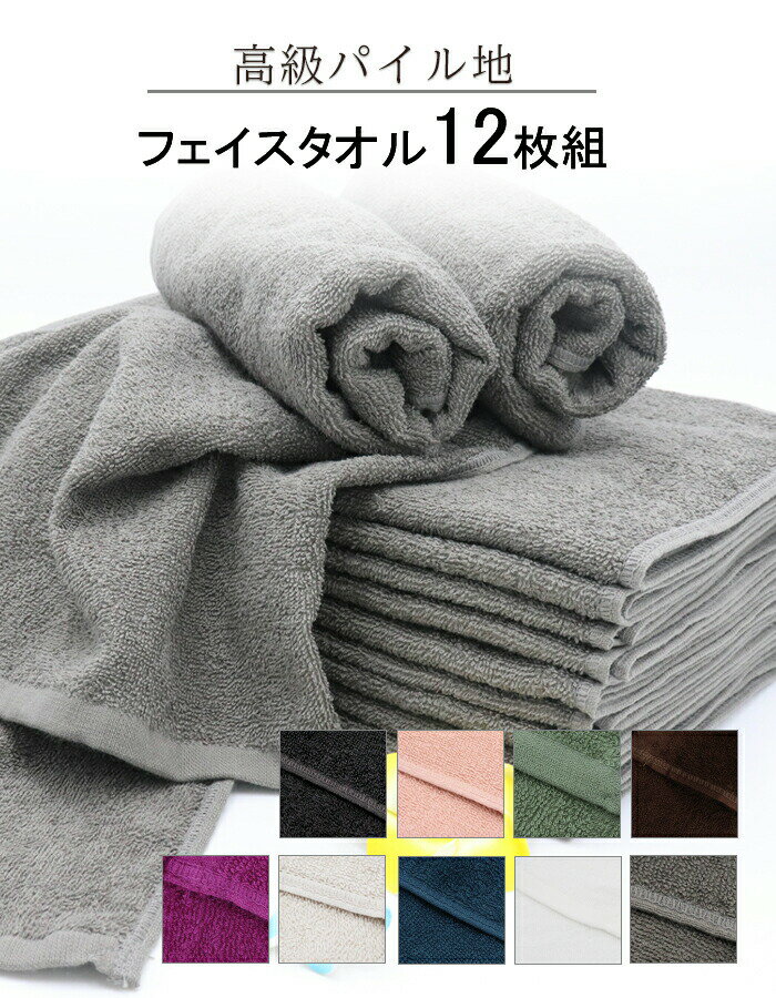\12枚組 / フェイスタオル まとめ買い 綿 コットン 100% 【 名入れ 可能 12枚セット ・・・