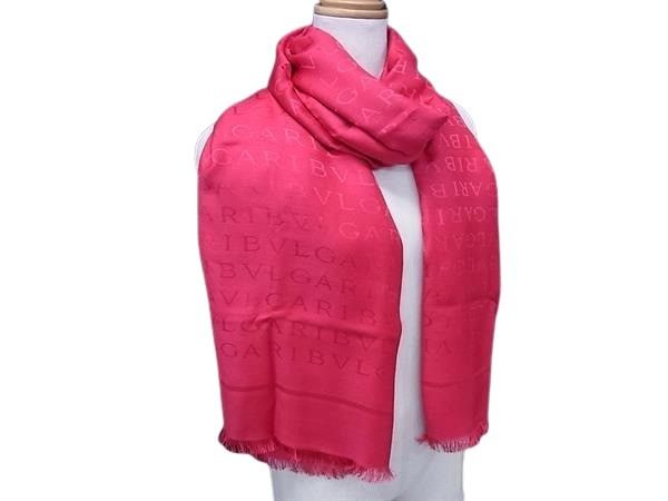 BVLGARI ブルガリ ストール ロゴマニア ピンク系 シルク60% ウール40% レディース フ・・・