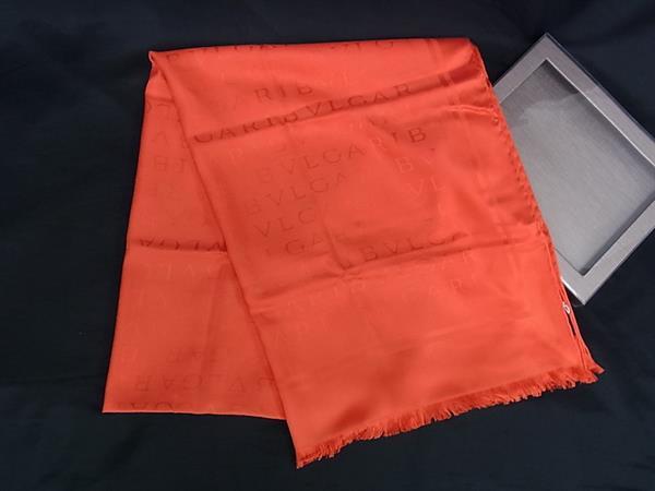 ■新品■未使用■ BVLGARI ブルガリ ロゴマニア シルク100% フリンジ マフラー ショール・・・