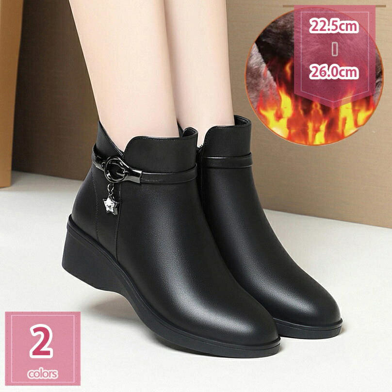 ブーツ 厚底 厚底ブーツ 厚底ショートブーツ 厚底ブーティー ウェッジソール 黒 レザー ショートブ・・・
